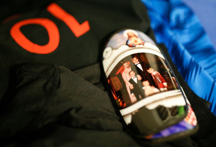 選手のなかにはシンガードに家族の写真をプリントする者も少なくない。モドリッチが6月の代表戦で使っていたのがこれだ。