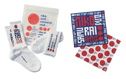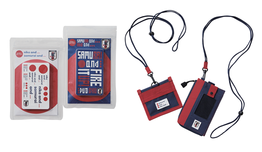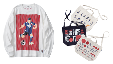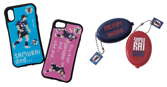 ピクセルアートのグラフィックがスタイリッシュなロングスリーブTシャツや、“SAMURAI and ...”や“FIRE IT UP!”のロゴが配されたトートバッグやスマホケース、ハンカチやコインケースなど、サッカー好きが気になるラインナップになっているぞ。
