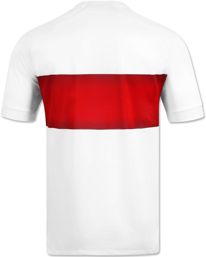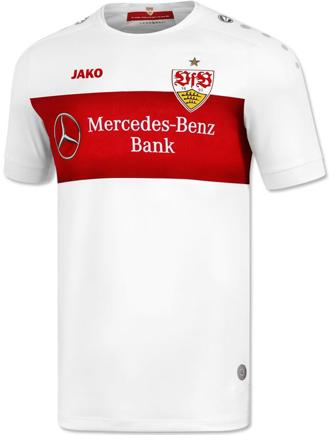 キットサプライヤーにJakoを迎え入れた第1弾のユニフォーム。ホームは余分な装飾を省いたオーソドックスなデザインだが、シュトゥットガルトらしい一着に仕上げている。昨季は31年ぶりに胸中央に付いたエンブレムだが、今季は左胸に位置を戻した。