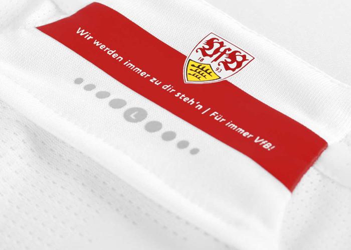 首元の内側にはクラブのスローガン“Wir werden immer zu dir steh'n | Für immer VfB!”をプリント。