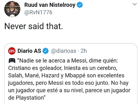 — Ruud van Nistelrooy (@RvN1776) 2019年10月22日