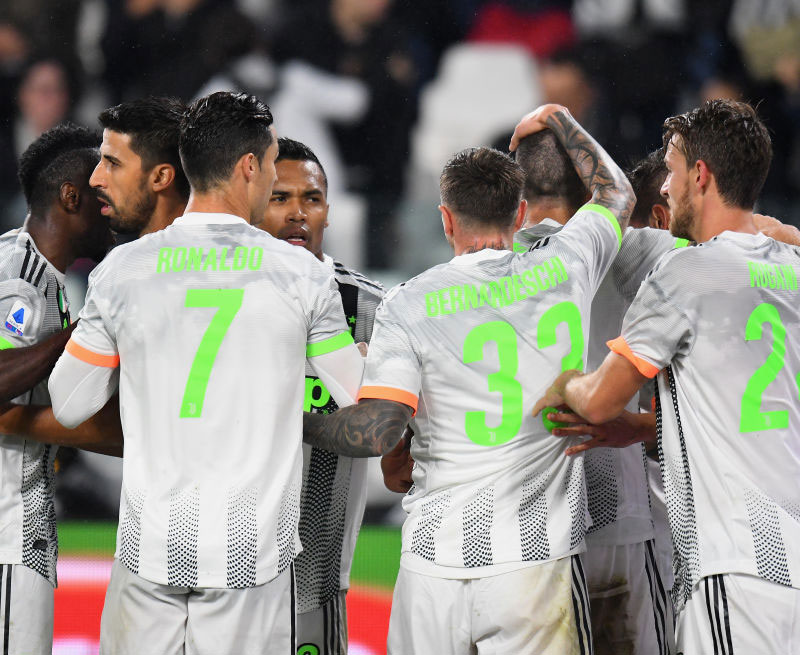 突如として現れたユヴェントスの今季「4番目のユニフォーム」。一見するとホワイトとブラックの伝統的な縦じま模様だが、驚くのは各部を彩るグリーンの存在だ。