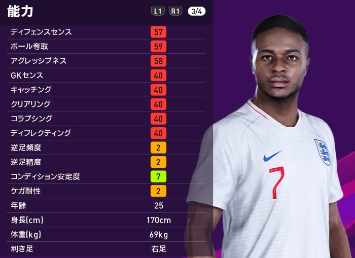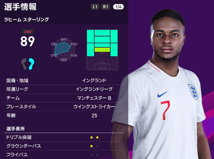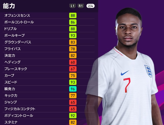 代表でもエースと呼べるほどの存在になったスターリング。スピードやドリブルの値が突出しており、スキルも豊富だ。