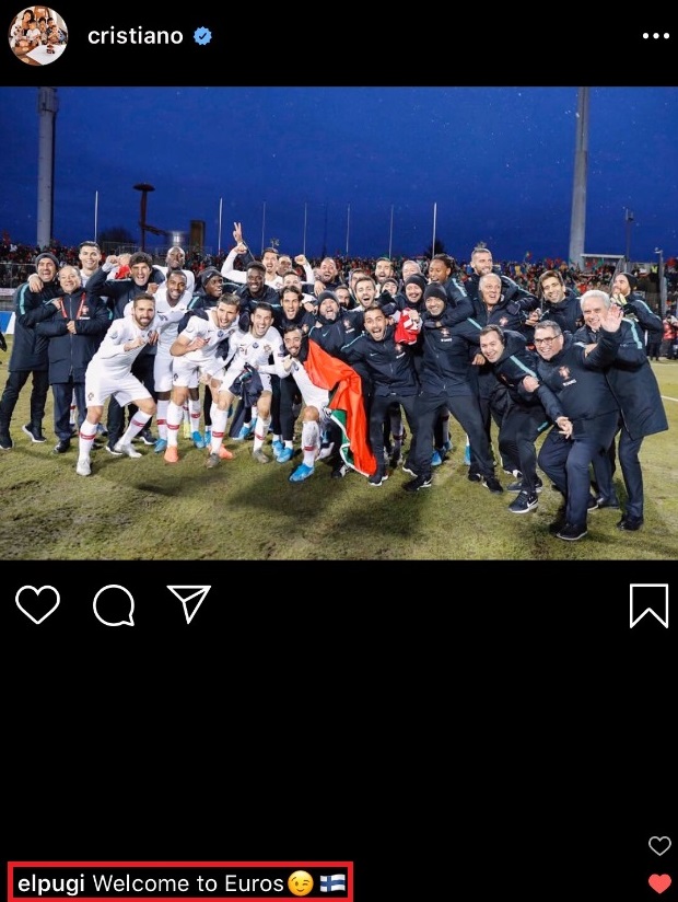 前回王者であるポルトガル代表も予選突破を決め、ロナウドは「僕らはEURO2020に到達した!チームを祝福する!」とInstagramにメッセージをポスト。