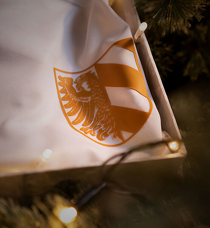 シャツ全体に9個の星と花柄の透かしをプリントした特別ユニフォーム。便宜上クリスマスユニフォームとご紹介しているが、正式にはマーケットの名称“Christkindlesmarkt(クリストキンドレスマルクト)”が付く。