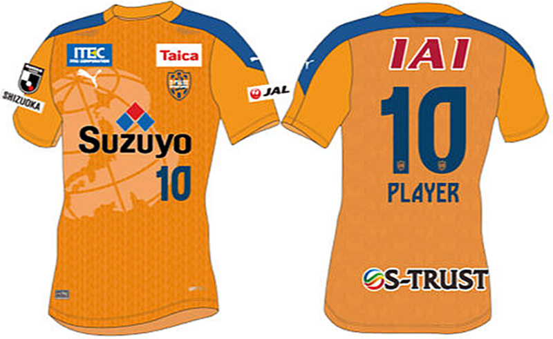 画像を見る限り各部のスポンサーは、胸が「Suzuyo(鈴与)」、右鎖骨は「ITEC(アイ・テック)」、左鎖骨は「Taica(タイカ)」、左袖は「JAL(日本航空)」、肩は「IAI(アイエイアイ)」、腰は「S-TRUST(エス・トラスト)」となっている。