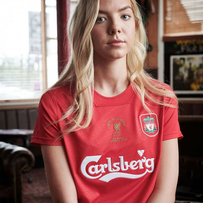 リヴァプールのサポータなら一生忘れることがないだろう、チャンピオンズリーグを優勝したキットだ。04-05シーズンのCL決勝ではPK戦の末にACミランに勝利。スコア0-3から追いついての優勝は「イスタンブールの奇跡」と呼ばれる。胸中央にゴールドのライヴァーバードを配置し、その上にはアーチ型で「EUROPEAN CHAMPIONS」、下には「ISTANBUL 2005」をレタリングしている。