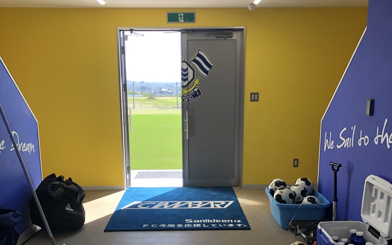 ドアが開くのを待つ選手の横には「We sail to the Dream」(夢に向かって航海する)…造語ですけどそれが壁に刻まれている。
