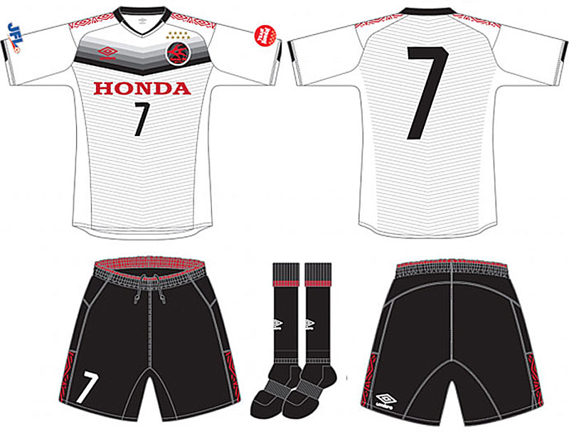 NEWアウェイも2021年の50周年を前に、更なる高みを目指すチームの士気と勝利への強い決意をV 字モチーフのグラデーションデザインで表現。シンプルで強さをアピールするデザインとなる。