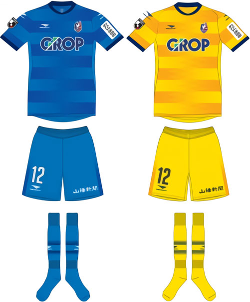 各部のスポンサーは、胸は「GROP(グロップ)」、背中上は「un.deux(アン・ドゥー)」、背中下は「ハローズ」、左袖は「おかやま信用金庫」、パンツは「山陽新聞」となっている。