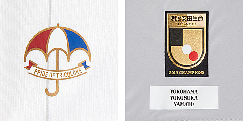 全ユニフォーム共通で、右袖にはJ1王者の証であるゴールドのチャンピオンバッジを装着。また、裾にはサポーターの歓喜を願った“トリパラ(トリコロール・パラソル)”のロゴを取り付ける。