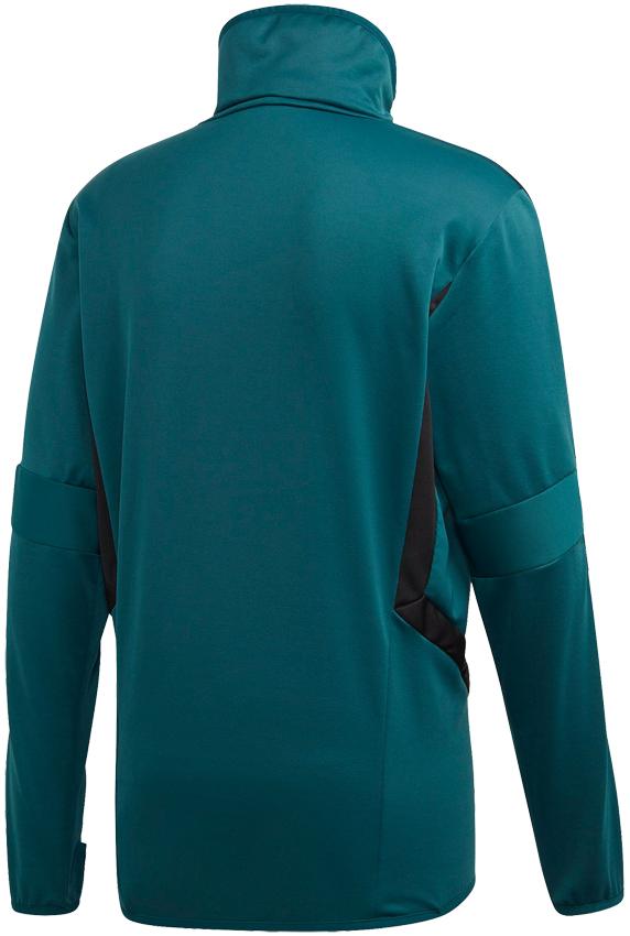 選手がトレーニング時に着用するウォームトップ。衣類内を暖かくドライに保つClimawarmを搭載し、ネックウォーマーのようなフリース素材の立ち襟が特徴的。前身頃は防風対策が施されている。