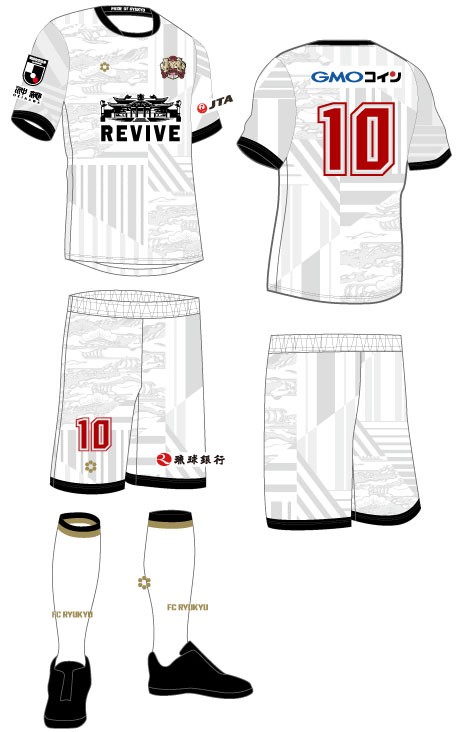 各部のスポンサーは画像を見る限り、背中上が「GMOコイン」、左袖は「JTA(日本トランスオーシャン航空)」、パンツは「琉球銀行」となる。