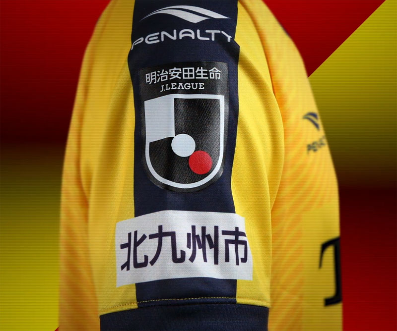右袖にはJリーグバッジと、その下にホームタウンの「北九州」が付く。
