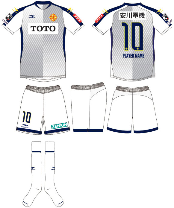 アウェイユニフォームは、ホワイトからグレーに変化するライングラデーションデザインを採用。「クリーンでフェアなサッカースピリット」を表現している。