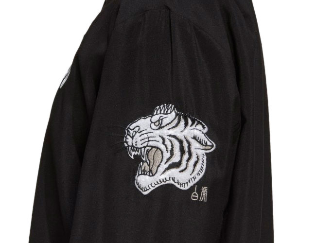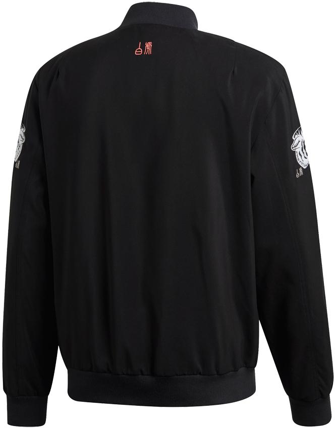 中国の春節を祝うフルボタンのボンバージャケット。素材にはリサイクルポリエステルを使用する。左胸にはユヴェントスのチームエンブレムを、そして両袖には伝説上の神獣「白虎(びゃっこ)」のエンブレムを取り付ける。