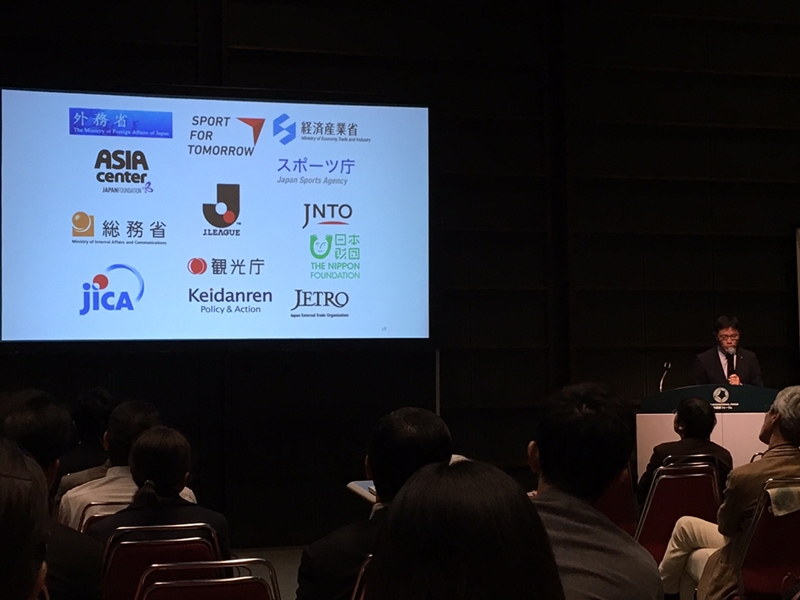 今では官公庁など様々な団体と連携しているJリーグ。当時はその走りの時期だった(※写真は上記の山下氏が『海外ビジネスEXPO2019東京』で行った基調講演の様子)。