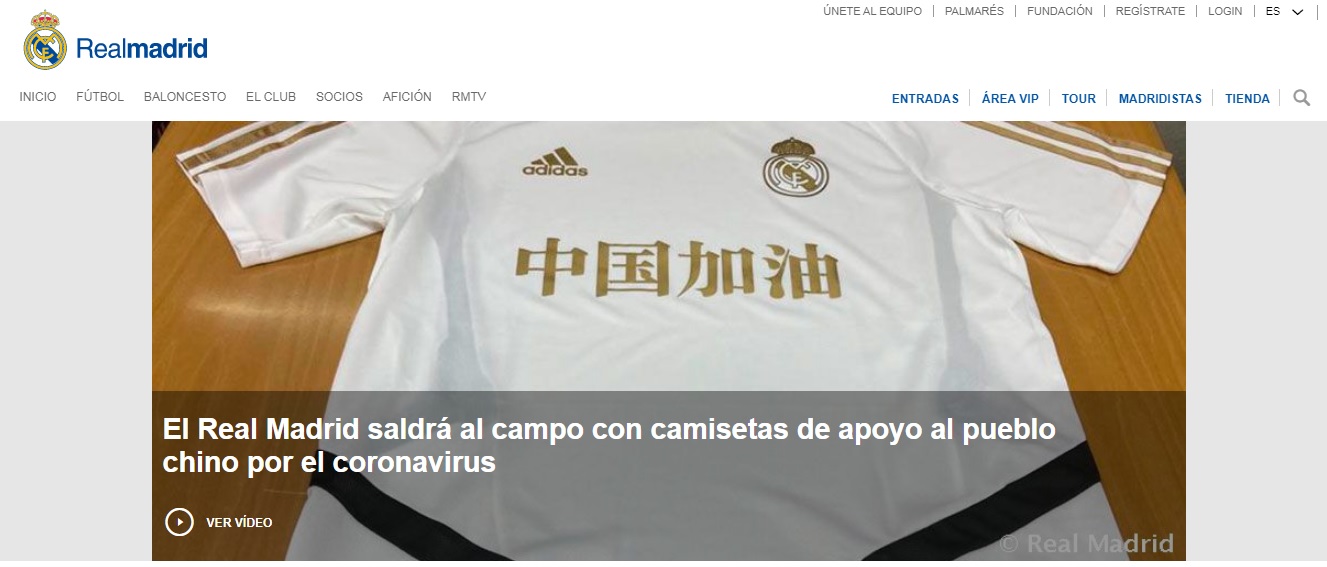 中国から広がりを見せている新型コロナウイルス。中国企業がオーナーであるインテルが「武漢がんばれ」というメッセージを出すなか、レアル・マドリーも中国サポートの姿勢を見せた。