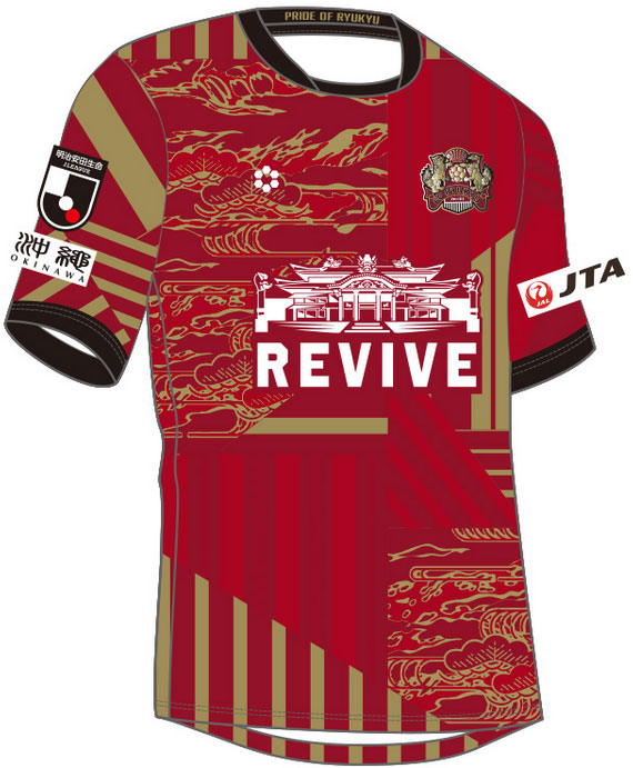 東京ヴェルディとともに、今季のJ2勢で最も強いインパクトを放つユニフォーム。昨年焼失した首里城を胸に刻み込み、沖縄や首里城再建を後押しする。
