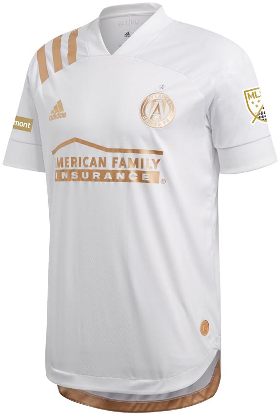 2年ぶりのモデルチェンジとなった新アウェイユニフォームは、2018-19モデルから引き続きホワイトを基調としたデザインに。胸スポンサー「Atlanta Family Insurance」はアメリカの保険会社。