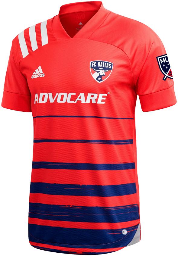 ダラスのホームキットは、ボーダー柄(フープス)が最も多い。今回はレッドとブルーという珍しい組合せのボーダーが登場した。スポンサー「ADVOCARE」は栄養補助食品関連の企業。