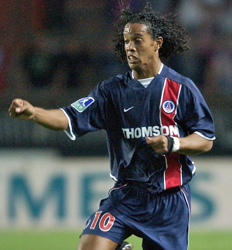 ロナウジーニョは2001年、ブラジルのグレミオからPSGへ移籍。02-03までの2シーズンに渡ってネイビーのユニフォームを身にまとった。