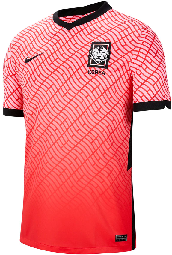 今回の新ユニフォームはホーム、アウェイともに大胆なデザインを採用。ホームは国旗(太極旗)にインスパイアされたウェーブ状のグラフィックが特徴ある一着。これまでの韓国のイメージを覆す仕上がりとなっている。