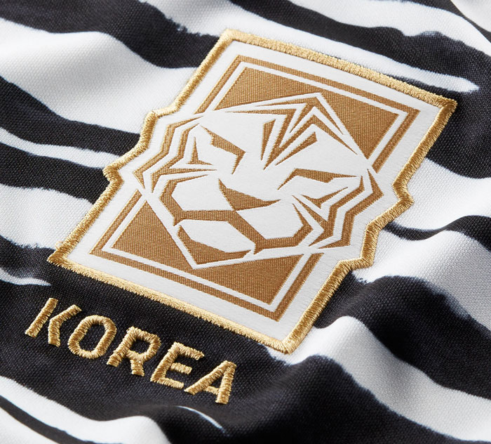 これまでのユニフォームと大きく異なる点が、左胸に付けるエンブレム。02W杯モデルから太極旗に代わり虎を描いたエンブレムを付けているが、今回は19年ぶりにデザインを一新。昨今のトレンドでもあるアイコンのようなデザインが登場した。