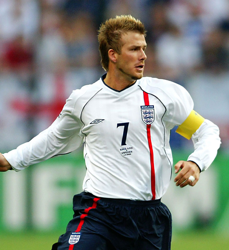 2002年日韓ワールドカップで着用した一着は世界中でヒットしたが、とりわけ日本ではベッカムフィーバーと重なり、凄まじい人気に。イングランド代表のレプリカユニが売り切れで買えないという、今では信じられないような事態が発生したほどだった。