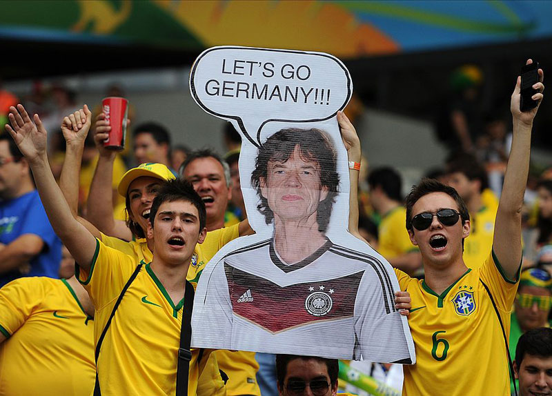 2014年のブラジルW杯ではそんなミックにあやかり(?)、スタンドには「相手を応援してくれ!」という願いを込めたこんなボードが登場した。
