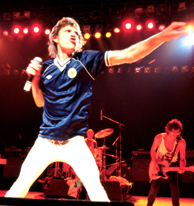 偉大なロックバンド、ローリング・ストーンズ。そのメンバーであるミック・ジャガーは、大のサッカーファンとしても知られている。写真は1982年5月のライブで、着ているのはスコットランド代表の1982年モデル。