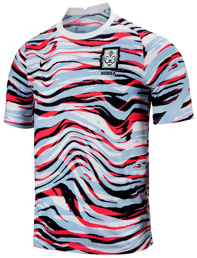 選手が試合前のウォーミングアップ時などに着用するトレーニングウェア。アウェイユニフォームと同じで虎模様をあしらっている。背面にはハングル語で「大韓民国」とレタリングする。