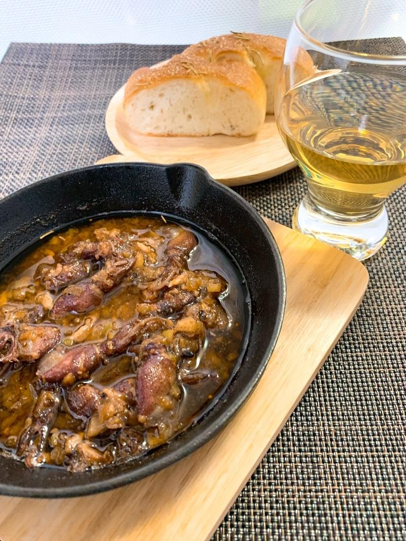 Mさん(以下略) 白ワインということでアヒージョに合わせようかなと思いましたがとても甘口です。本来ならばデザートワインとして使うのでしょうが、ホタルイカのアヒージョをピリ辛仕立てにしてあえて甘辛ミックスとしてみました。