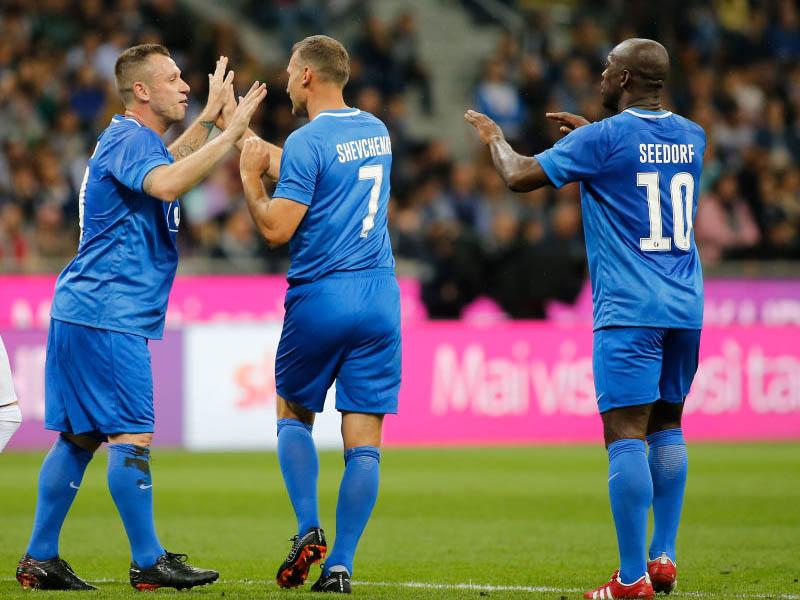アンドレア・ピルロの引退試合に登場したカッサーノだが、シェフチェンコ、セードルフが体型を保っているのに対してカッサーノはビッグになってしまっていた…。
