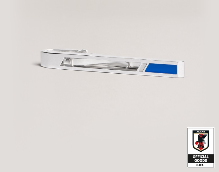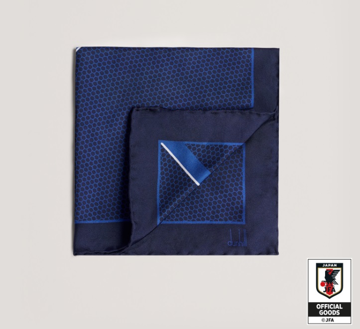 SAMURAI BLUEをイメージしたグラフィカルなストライプに、カラーはdunhillのイギリス的なモチーフとサッカー日本代表チームを象徴するネイビーで統一し、モダンな装いに仕立てました。