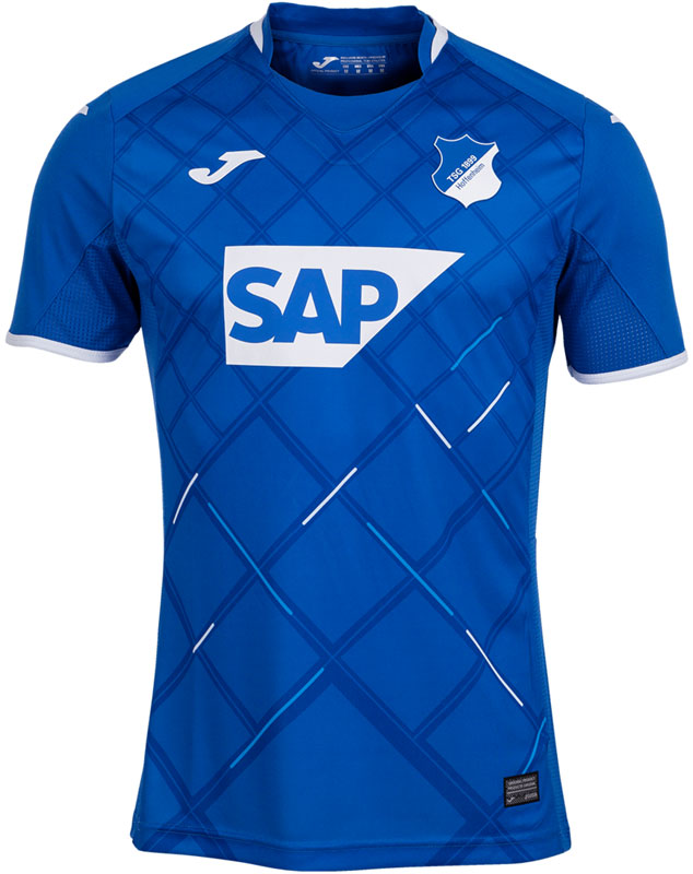 今季からサプライヤーがJomaに。伝統の青を継承しつつも、金網フェンスのような斜め線のグラフィックがユニークなデザイン。