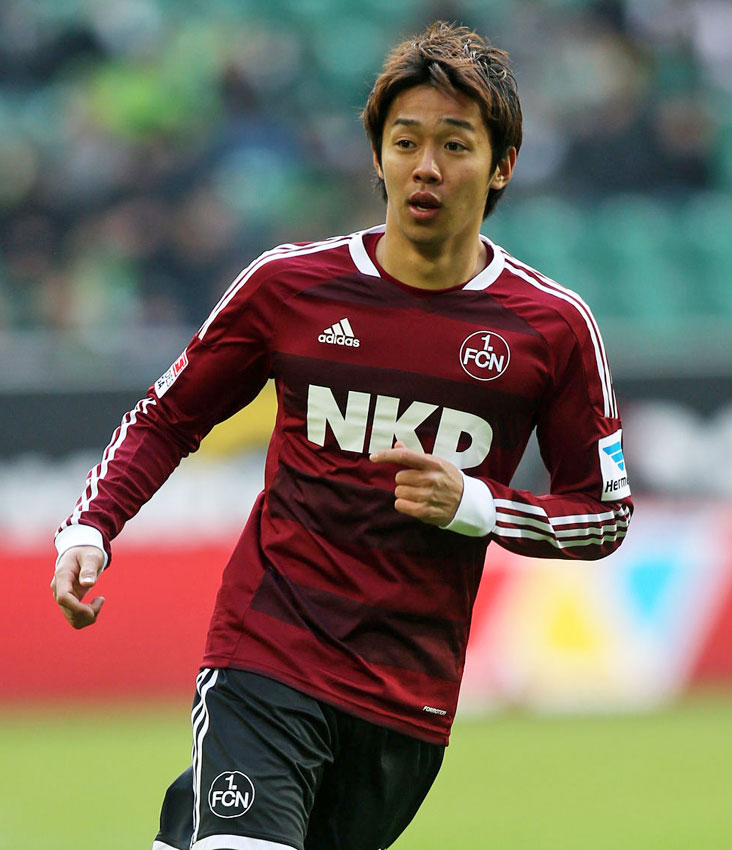 2012年夏、セレッソ大阪から完全移籍でニュルンベルクへ。赤を基調とした濃淡のストライプが印象に残るデザインだった。
