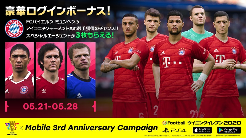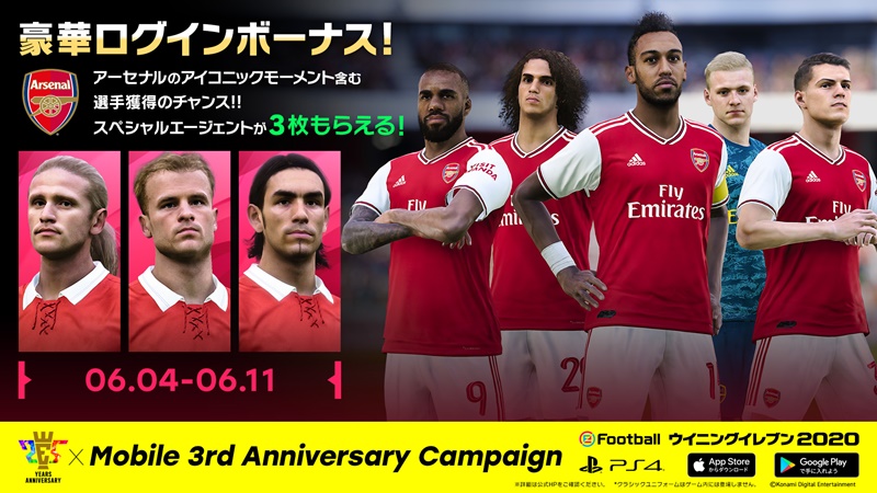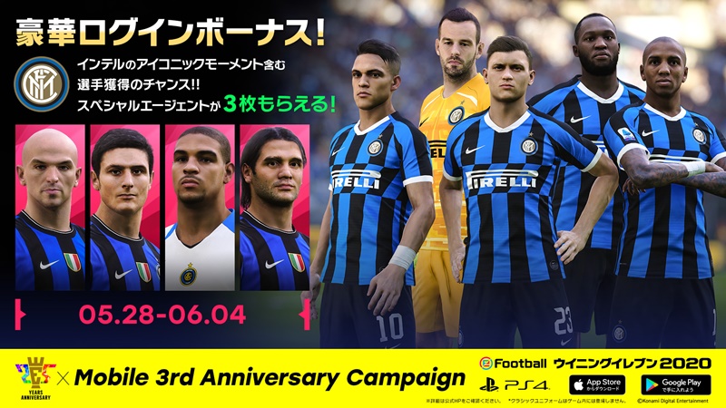 さらに、人気モバイルゲーム『eFootball ウイニングイレブン2020』が3周年となったことを記念し、KONAMIが感謝の気持ちを込めた「25th Anniversary x Mobile 3rd Anniversary Campaign」をスタートさせる。