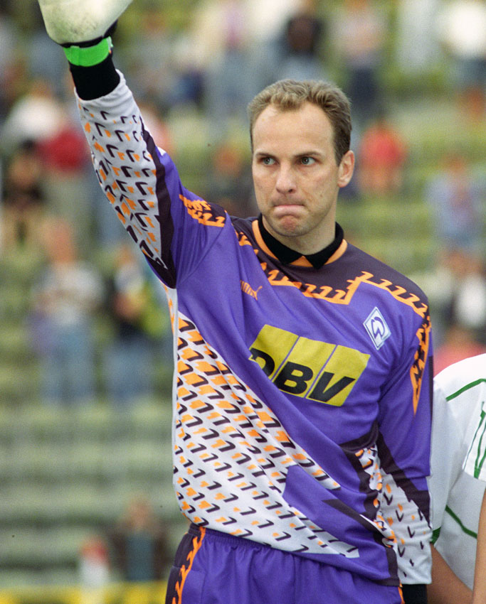 90年代前半のブレーメンには奇抜なデザインのユニフォームがいくつか存在したが、最たるものがこのGKキット。ちょっと言葉が出ない。