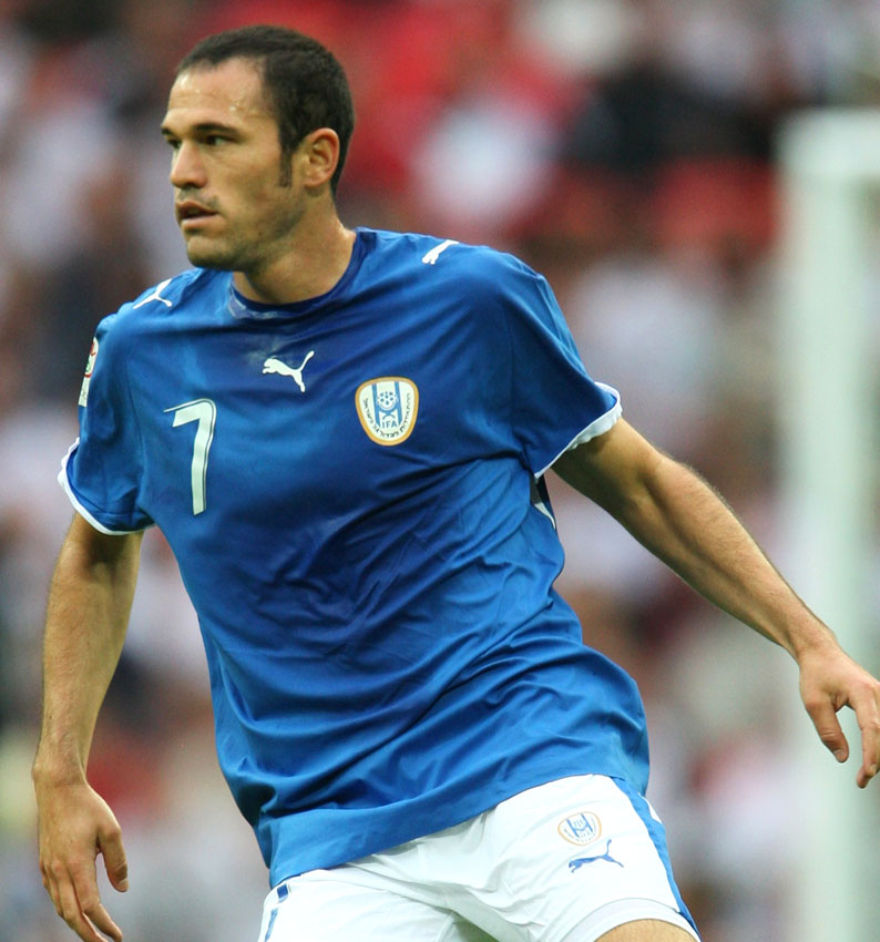 90年代からPumaのキットを使うイスラエルには、シンプルながら好デザインが多い。ブルーが美しい06モデルもその一つで、主にEURO2008予選などで着用した。