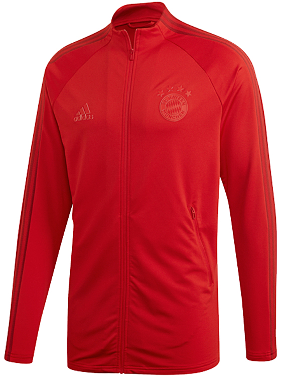 選手がピッチ入場の際などに着用するアンセムジャケットも同時にリリース。バイエルンらしく、ほぼレッド一色のスタイリッシュなデザインが登場した。