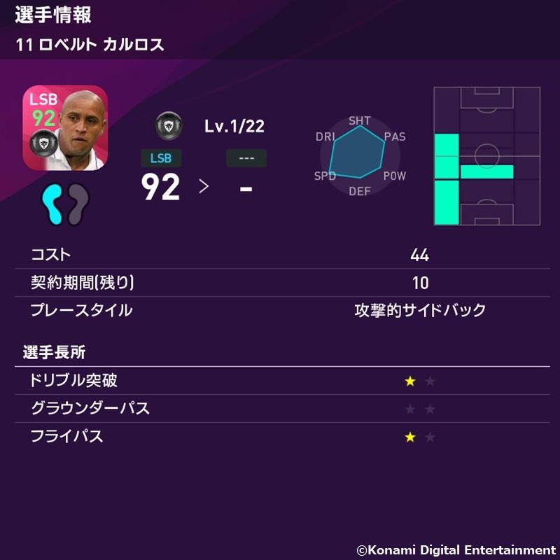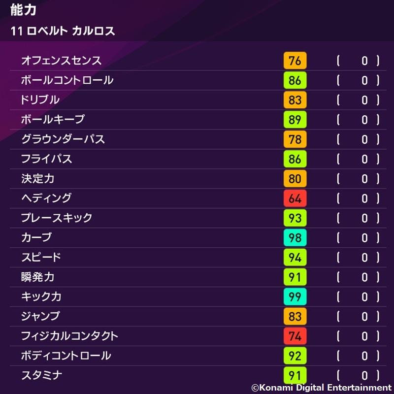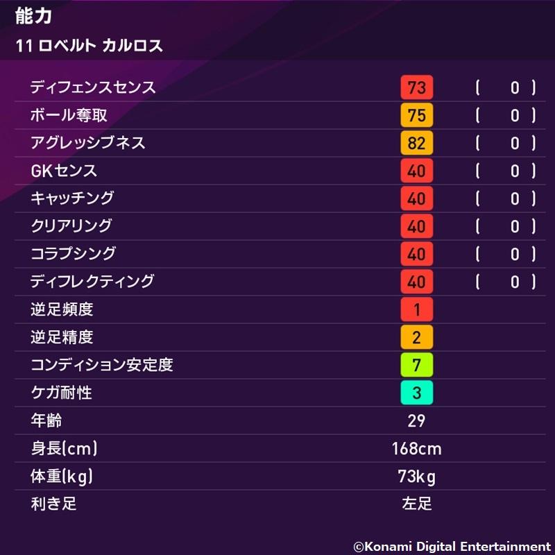 そしてロベカルはこんな感じ。キック力はもちろん99!“悪魔の左足”で相手を恐怖に陥れろ。