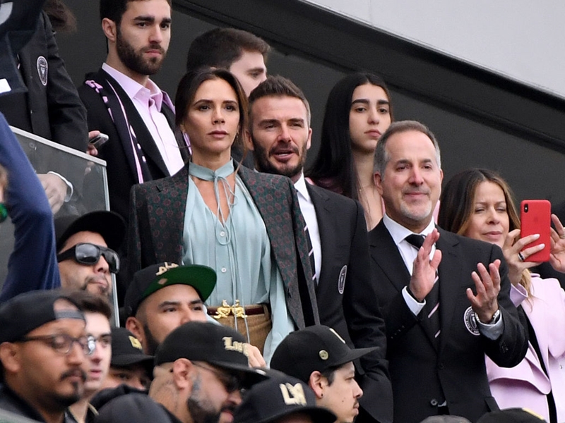 ※インテル・マイアミの開幕戦。ロサンゼルスでの試合(対ロサンゼルスFC)だったこともあってかヴィクトリア夫人を伴って来場したベッカム。