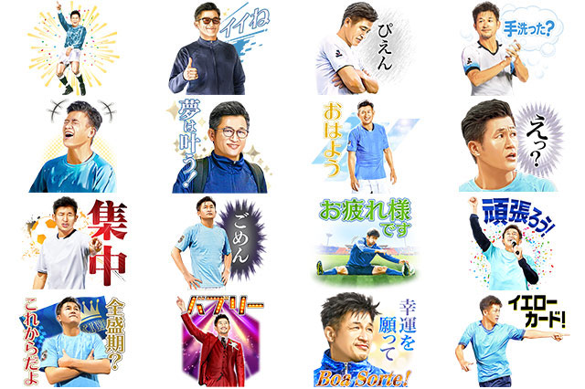 JリーグLINE公式アカウントを友だち追加することで、16種類のオリジナルスタンプが無料でダウンロードできる。