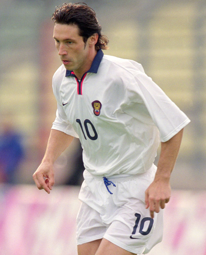 2002年日韓ワールドカップの予選などで使用。シャツ自体は当時のテンプレートなのだが、ロシア国旗の3色のバランスと配置が絶妙。“双頭の鷲”のエンブレムが際立つデザインだった。