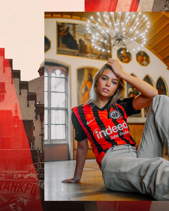 17-18シーズンにドイツカップを優勝した際にもレーマーで祝勝会を行ったフランクフルト。今回のデザインには、再びレーマーでカップを掲げるという願いが込められている。