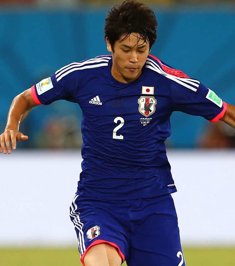 内田も出場した2014年ブラジルW杯で着用したユニフォーム。背中のラインが特徴的で、円陣を組むと輪のようにつながることから「円陣モデル」と呼ばれる。
