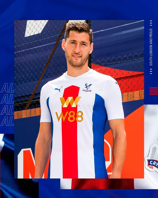 新アウェイキットはホワイトを基調にレッドとブルーのストライプ。基本的にホームと同じデザインの色違いとなる。胸には新たに「W88(オンラインカジノ)」のロゴマークを掲出する。