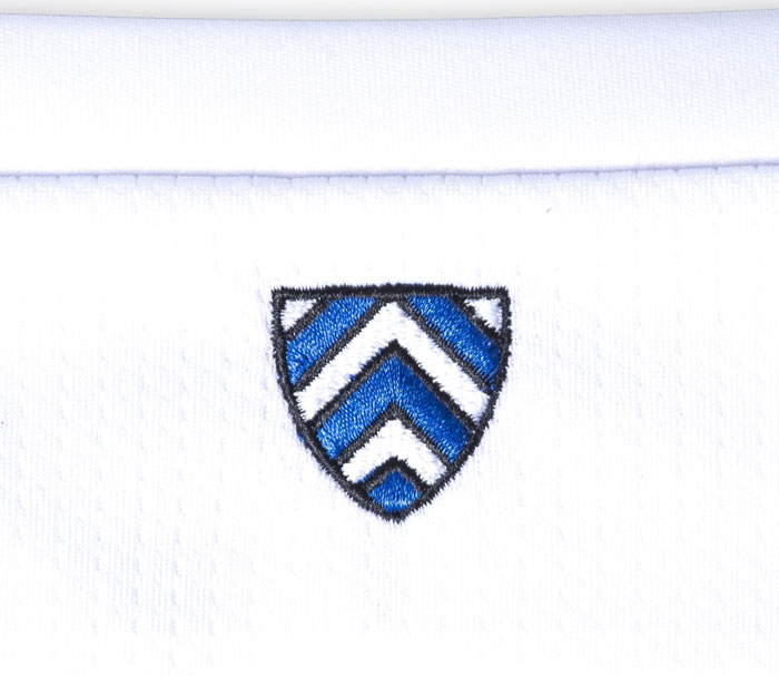 ビーレフェルトの街の紋章に描かれている“逆V字の盾”。これをチームカラーで彩ったものを、背面の首元に配する。