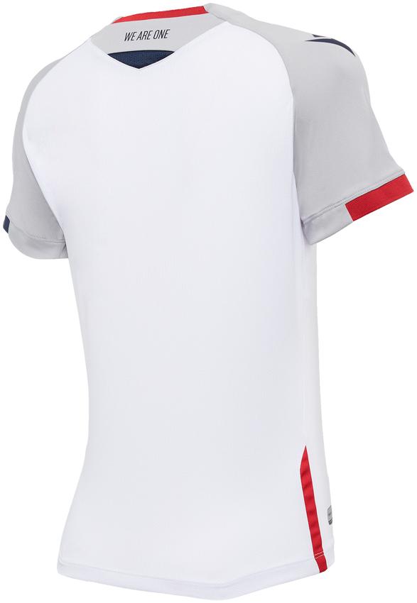 新アウェイユニフォームはホワイトを基調にレッドとブルーの差し色。エンブレムはシルバーで彩り、ステルスロゴ的で目立たない。